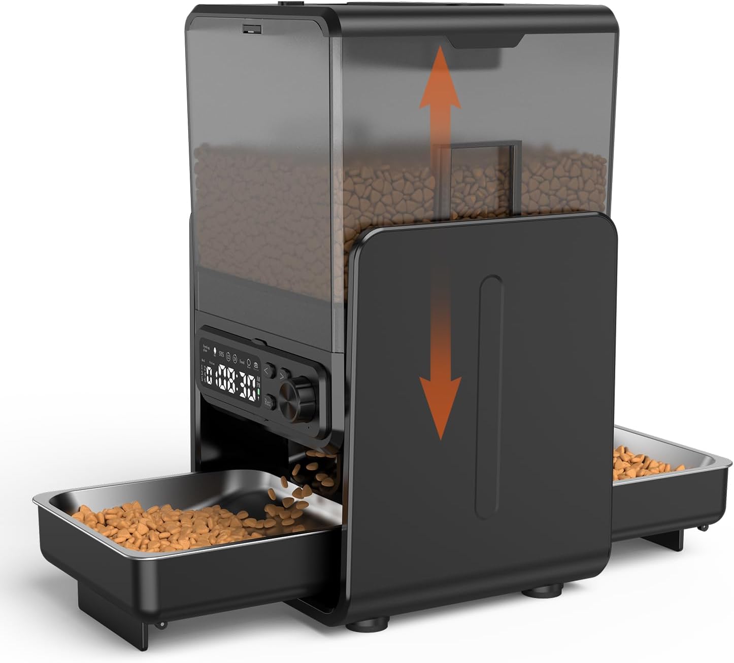We run a kitten foster home, so having a reliable feeder is really important. The last one we had quit working out of nowhere, which made things stressful. This new feeder has been much better so far. It feels sturdy and the setup was easy. What I like most is that it has two sides. When we feed the kittens, they usually fight over the same dish, but now they can eat at the same time without as much pushing and shoving. The raised bowls also make it easier for them to eat comfortably, and it keeps the feeding area a little cleaner.